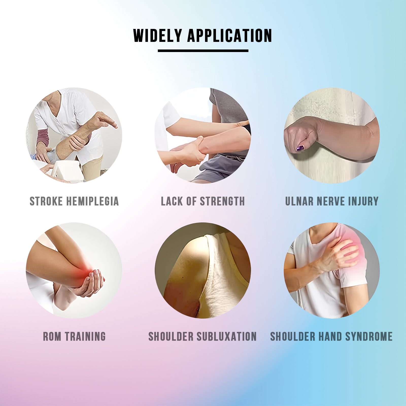 - 【Rehabilitation Effect】Help patients with rom training and shoulder hand syndrome etc. relieve flexor spasticity, promote shoulder and elbow separation movement, improve the flexion and extension functions of the shoulder and elbow joints, strengthen the muscle strength of the shoulder, improve shoulder joint subluxation, and improve the range of motion of the joints. Regular exercise can achieve the rehabilitation and maintenance effects of core muscle groups of the upper and lower extremities