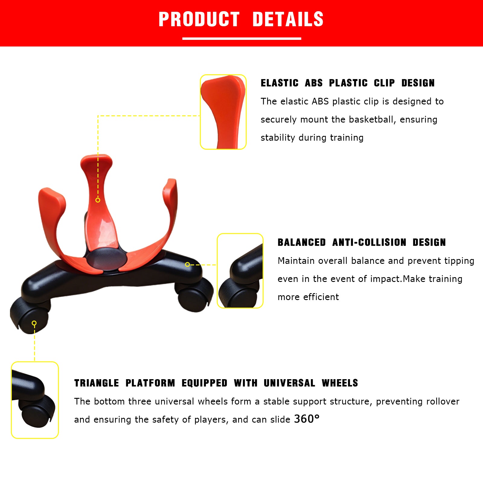 - 【Sturdy and Durable】It maintains a stable structure & resists deformation or damage even with intensive, frequent outdoor use, eliminating the need for equipment replacement. 3 wheels form a stable support structure to prevent falls and ensure players' safety, while allowing 360° smooth sliding. The base and blades are made of ABS plastic. The 3 blades are elastic which can securely hold size 5, 6, or 7 basketballs, making it suitable for both children and adults